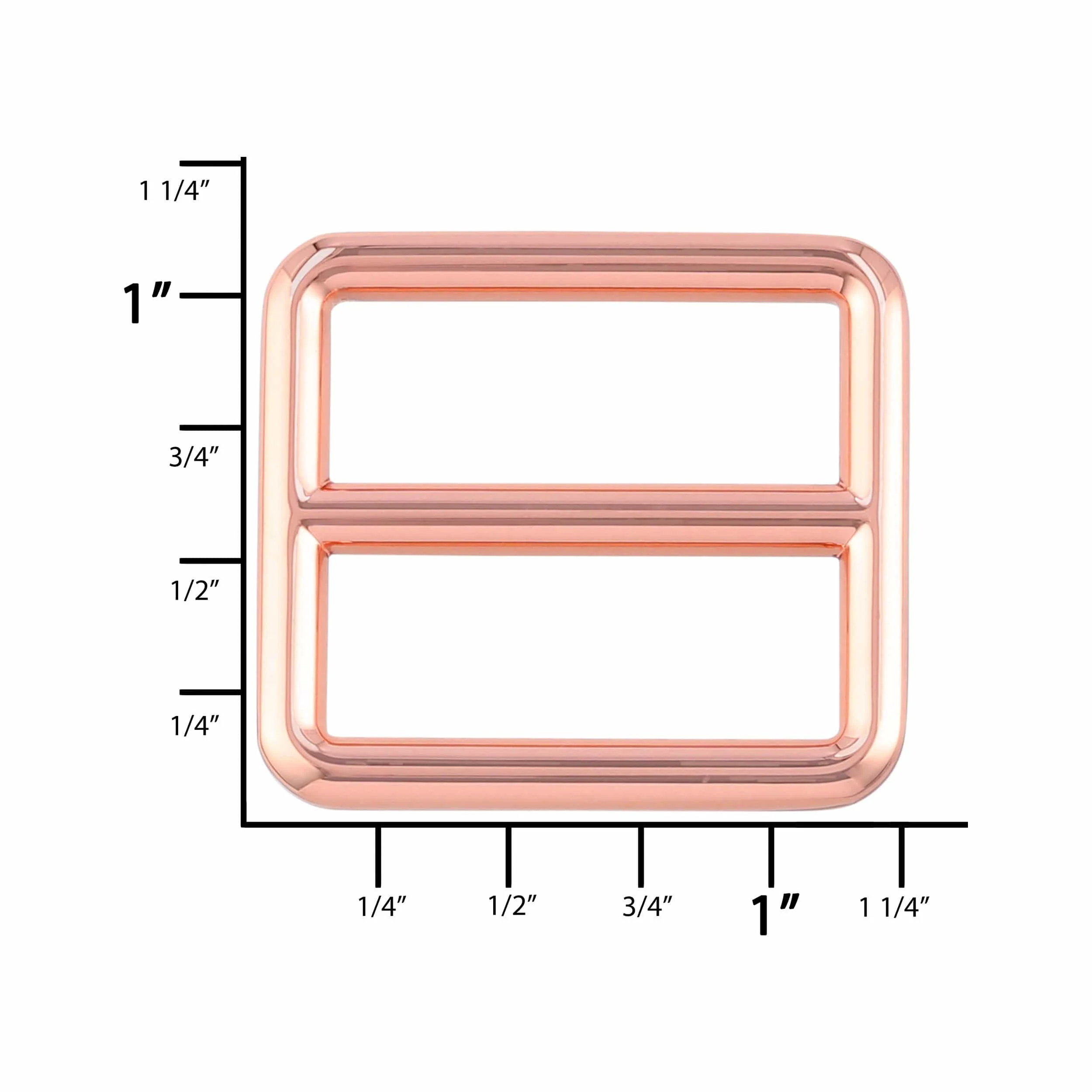 Our square tri glide strap slider is a modern, durable design that is a great compliment to leather straps. This slide features a popular shiny copper (rose gold) finish and accommodates straps up to 1" wide.